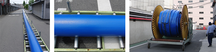 Large-volume water-supply hose JET MEGA FLOW® / JET MULTI FLOW® are effective for large-scale fires, etc., with the purpose of sending a large amount of water to a long distance. "JET MEGA FLOW" and "JET MULTI FLOW" are developed based on the design concept that prioritizes safety and ease of use. Since both sides of the hose are covered with urethane resin, it has high weather resistance and durability.